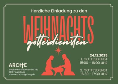 Die ARCHE Augsburg ist eine evangelische Freikirche im Sheridanpark. Wenn du mehr darüber erfahren möchtest, was uns als Kirche begeistert und verbindet, klicke hier oder schau' im Gottesdienst vorbei.